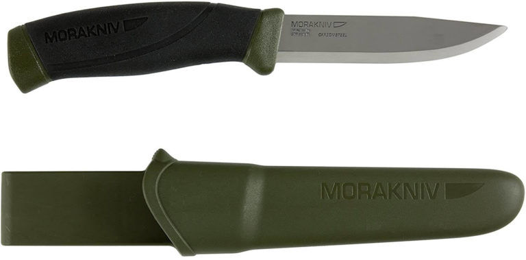 The Morakniv Companion Fixed Blade Outdoor Knife is a versatile fixed blade knife with 4.1” high carbon steel blade. It is an ideal choice for carving, cutting tinder, Food preparations, and cutting wood. The knife dimension is 9.1 * 1.9 * 1.4 inches. The weight of the knife is 4 ounces.